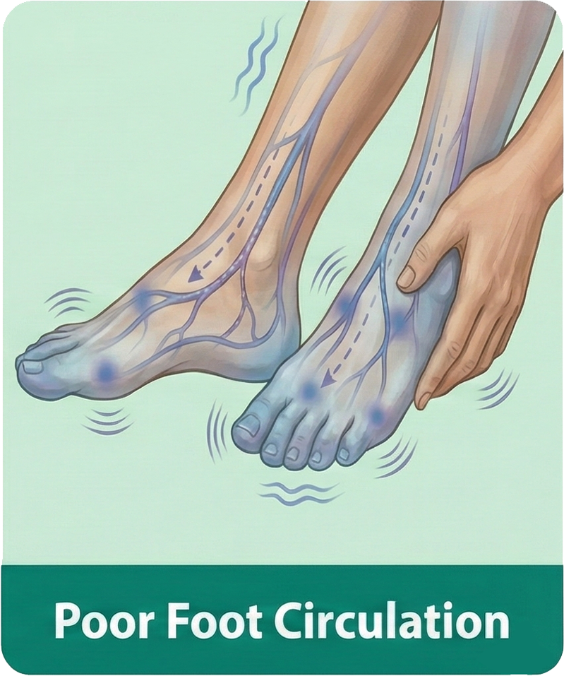 By supporting daily muscle relaxation and healthy circulation, it helps reduce stiffness, ease ongoing foot fatigue, and promote healthier foot function — so your feet can recover naturally each day.